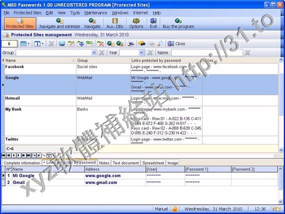 輸入此密碼管理軟件,如Facebook或Twitter,網絡郵件的網站像谷歌或Hotmail,Messenger的網站,
