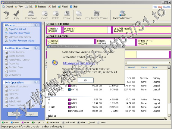 EASEUS Partition Master v6.5.1 英文正式版(用來配置和管理分區的硬碟機的工具軟體)