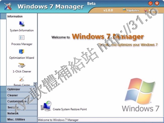 Yamicsoft Windows 7 Manager v3.0.1 英文正式版(Widnows7 總管是優化和設置軟體)